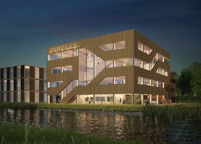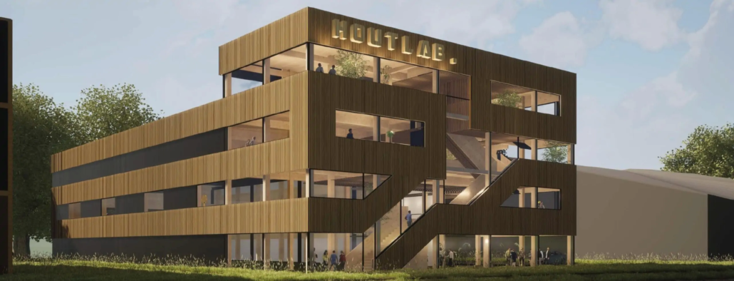 Houtlab is een initiatief van Woody Building Concepts. Dit bedrijf bouwt en ontwikkelt slimme bedrijfshuisvesting volledig uit samengesteld hout wat is verkregen uit duurzaam beheerde bossen, dit draagt bij aan het in stand houden van bos en het vergroten van het volume CO₂ wat in het hout wordt en ligt opgeslagen.