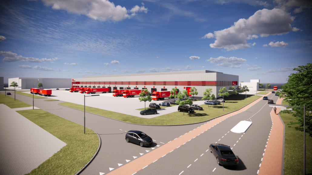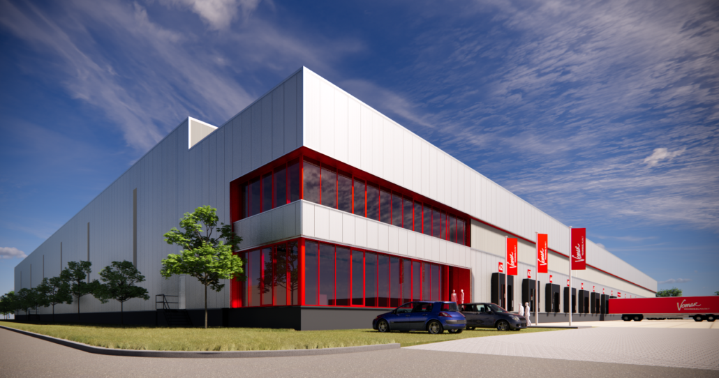 Hardeman | van Harten is op dit moment bezig in Alkmaar met de nieuwbouw van Vomar Voordeelmarkt. Wij leveren en monteren 14.250 m² dakbeplating, 7.425 m² gevelbeplating in een licht grijze kleur, 780 m² polycarbonaat en 200 m¹ zetwerk kokers in de bedrijfskleur van Vomar, rood. Het pand zal ingedeeld worden in 14.000 m² magazijn en 315 m² kantoren.