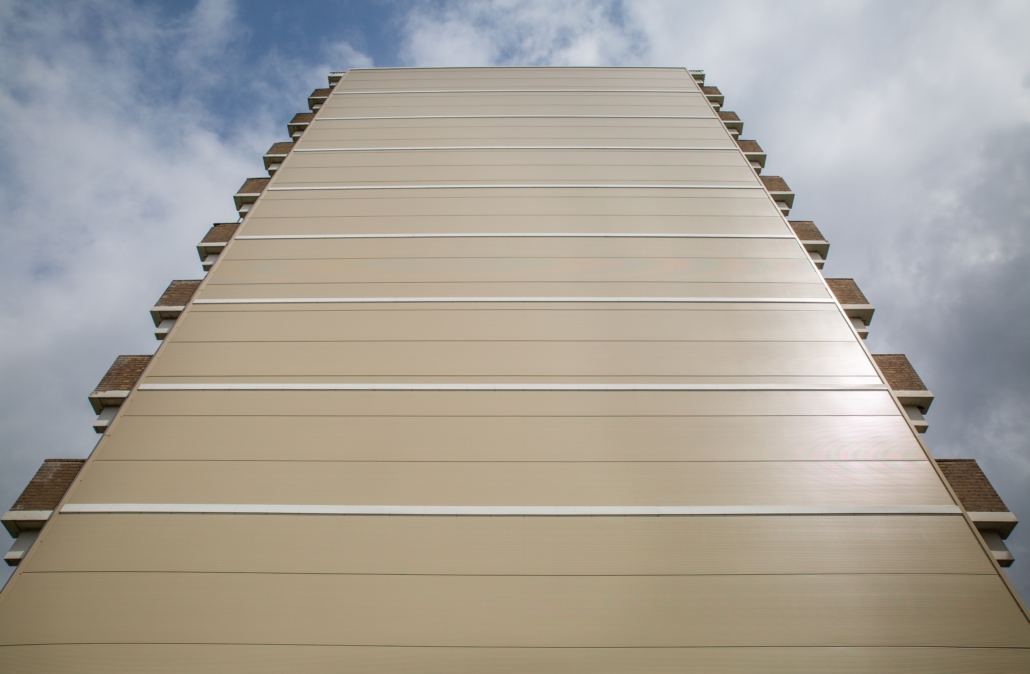 Gevelbeplating levering en montage in opdracht van V.V.E. Scheldeflat.