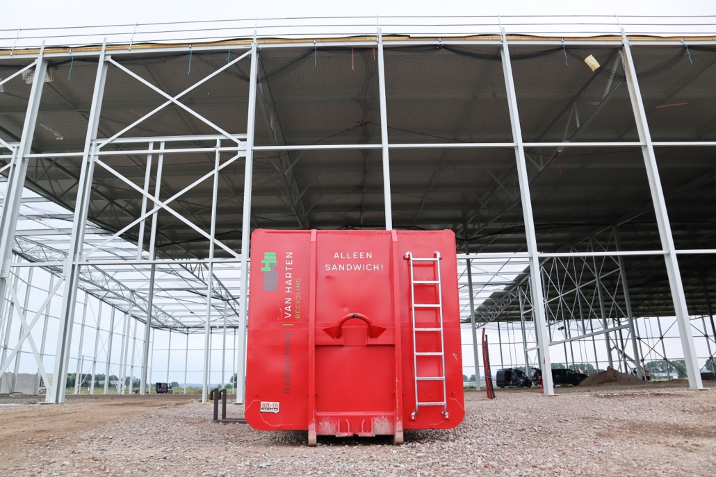 Aan het begin van dit jaar zijn wij begonnen met het inzamelen van sandwichpanelen op renovatie- en sloopprojecten. Dit doen wij met onze nieuwe containers die uitsluitend zijn bedoelt voor bouw- en sloopafval van sandwichpanelen. Zo hebben wij straks voldoende recyclemateriaal beschikbaar.