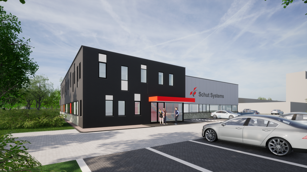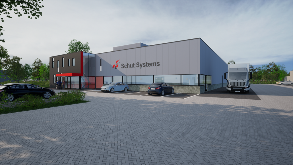 Schut Systems, leverancier van verpakkingsmachines, is toe aan een nieuw pand wat zal bestaan uit een productiehal, showroom en kantoren. Het bedrijf dat voor 50 jaar terug begonnen is als licentiehouder van de zogenaamde Sprinter locking heeft zich ontwikkeld tot leverancier van topload-, endload en sleevemachines. Schut Systems zit nog steeds in de stijgende lijn, daarom wordt er met de bouw rekening gehouden met toekomstige uitbreiding.