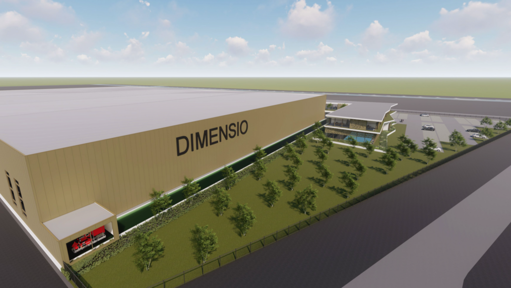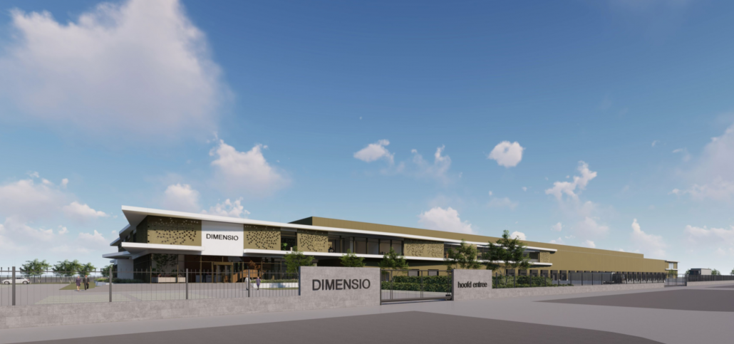 In opdracht van Aan de Stegge gaan we binnenkort beginnen aan het project van zakkenspecialist Dimensio te Almere. Voor dit nieuwe bedrijfspand gaan wij de levering en montage van de dak- en gevelbeplating verzorgen. De totale grootte van de dakbeplating zal 31.000 m² zijn en voor de gevels zullen wij een grootte van 10.000 m² gaan beplaten. Bijzonder aan dit project is de verrassende entree. Er wordt namelijk gebruik gemaakt van luifels met daarop een duurzaam groendak. Daarnaast zijn ook de geperforeerde Louvre luiken een opvallend element aan de entree.